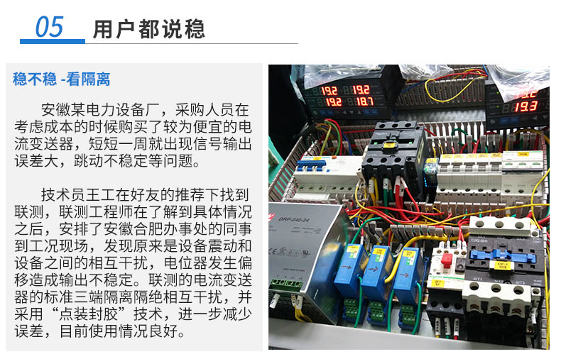 產(chǎn)品簡介:電流變送器可以直接將被測主回路交流電流或者直流電流轉(zhuǎn)換成按線性比例輸出的DC4~20mA(通過250Ω 電阻轉(zhuǎn)換DC 1~5V或通過500Ω電阻 轉(zhuǎn)換DC2~10V)恒流環(huán)標(biāo)準(zhǔn)信號(hào),連續(xù)輸送到接收裝置(計(jì)算機(jī)或顯示儀表)。