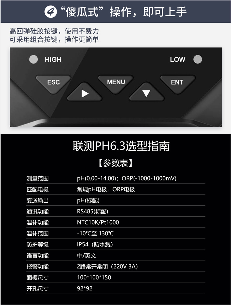 產品簡介:SIN-pH6.3型工業pH計,是工業酸度計的智能化升級產品。可對污水pH值進行連續測量和根據現場工況進行定量控制,來選擇相應的PH電極以有效提高產品的測量精度和延長產品的壽命。