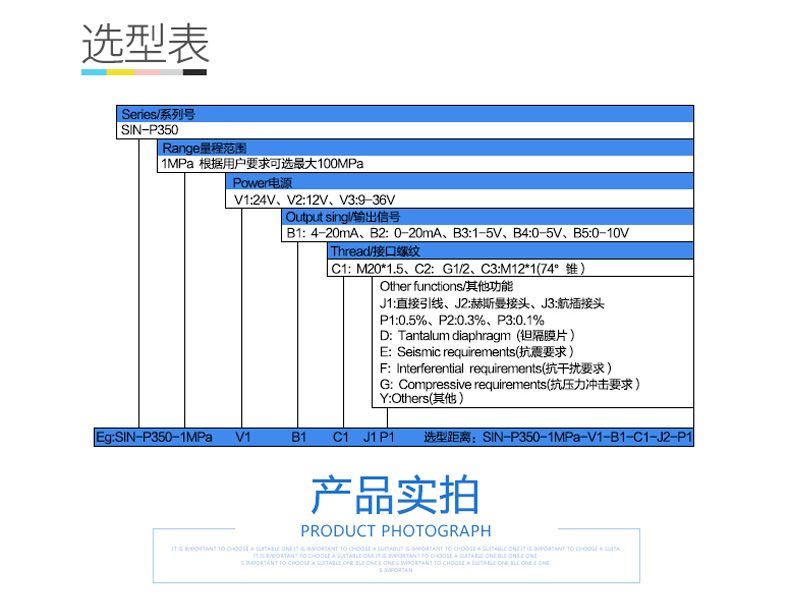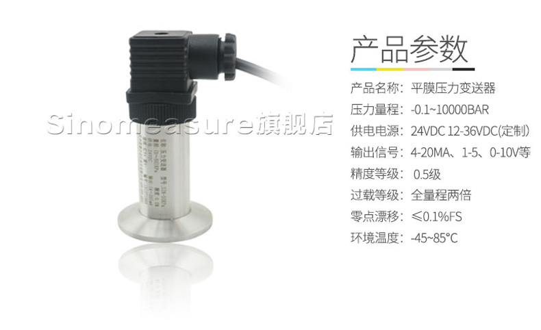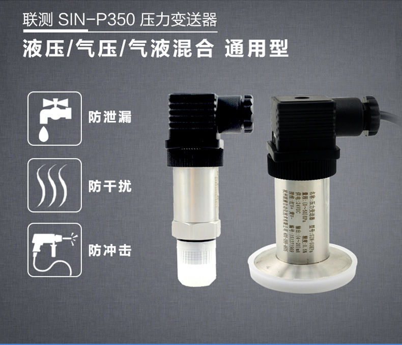 產品簡介:SIN-P350衛生平膜型壓力變送器,衛生平膜型液位變送器是測量端采用特殊堅固處理的齊平隔離膜片。結構緊湊、耐腐蝕,抗震動、抗微粒沖擊、寬范圍溫度補償。膜片采用316L不銹鋼材料,特別適用于醫療、食品行業有衛生要求的,粘稠流體壓力和液位測量,解決了結垢,堵塞,清潔衛生等問題。高精度的信號處理電路位于將傳感器輸出信號轉換為標準輸出信號,可直接與計算機、控制儀表、顯示儀表等相連。采用一體化全不銹鋼結構,經過多次不銹鋼焊接,實現了全固態設計,安裝方便。廣泛應用于食品、醫藥、衛生及釀酒工業等部門。